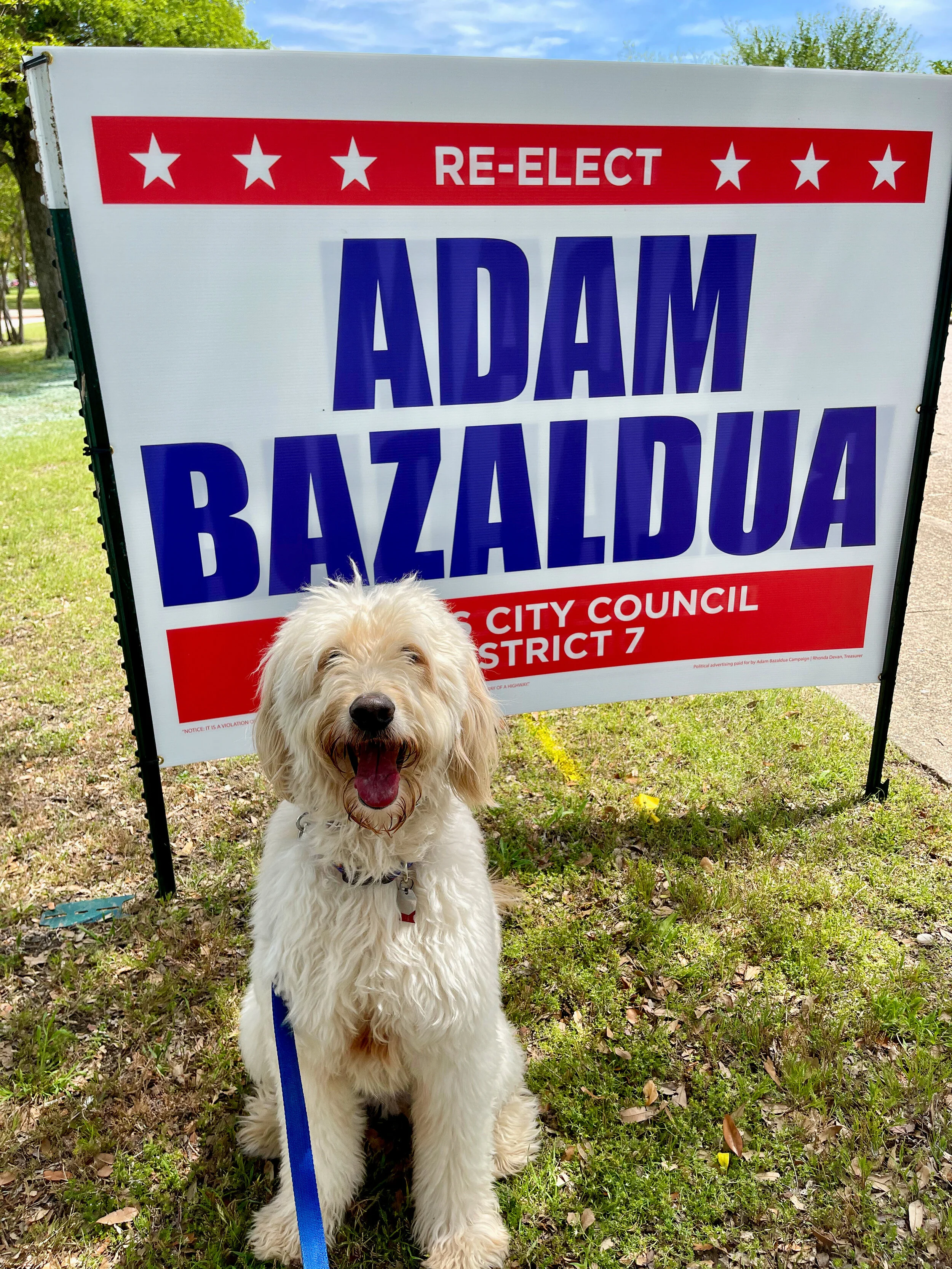 Show your support for Adam with a yard sign: We have regular, small ones or large signs for your home or business.